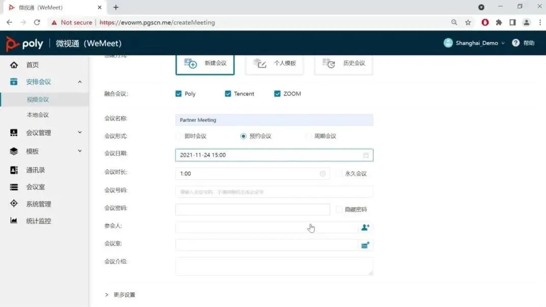 (内容来自POLY) 演示中心|第34期:PolyWeMeet微视通融合平台会议管理